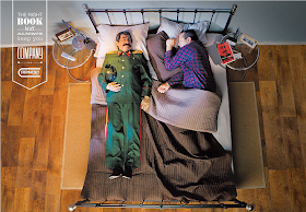 Ela diz que "The Right Book Will Always Keep You Company", ou seja, o livro certo sempre lhe fará companhia! E, nela, vários personagens de livros clássicos da literatura estão dividindo a cama com os seus leitores. Muito legal, não acham?